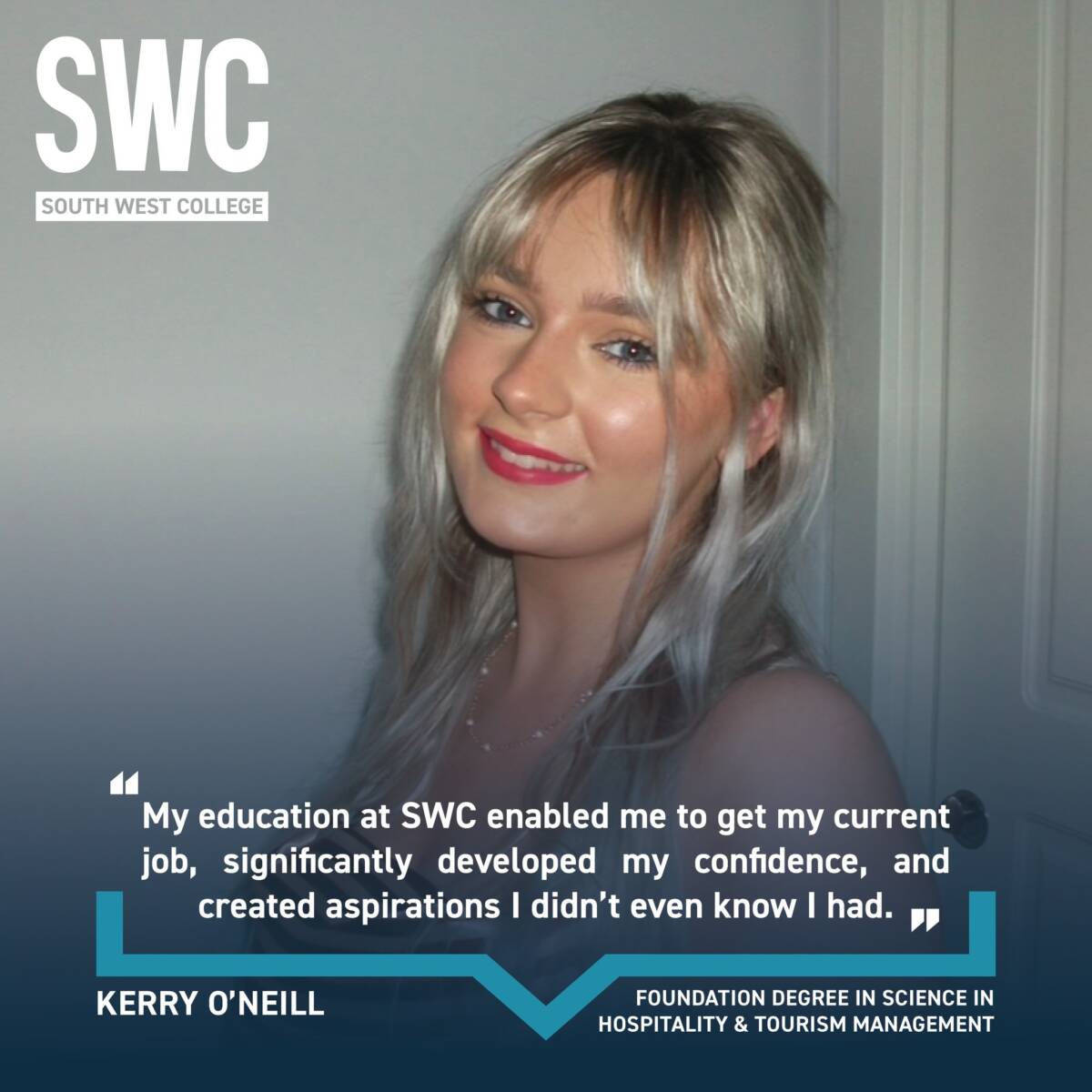 Enniskillen Open Day 2026 27th January 2026, 03:00pm - 07:00pm Discover South West College at Our Open Days! Explore more at South West College this coming January as we host our Full-Time open events for Further Education, Higher Education and Apprenticeships. We look forward to meeting you in the new year. Campus Date Time Dungannon 20th January 2026 3pm-7pm Enniskillen 27th January 2026 3pm-7pm Omagh 3rd February 2026 3pm-7pm Thinking about your next step? Whether you’ve just finished GCSEs or A Levels, or you’re considering a career change, our Open Days are the perfect opportunity to explore your options, meet expert lecturers, and experience college life first-hand. Whether you’re thinking about further education, vocational courses, apprenticeships or higher education, you’ll find something that’s right for you. Choosing your next step can be a big decision, but we’re here to help. Get the answers you need, explore our state-of-the-art campuses and see where your ambitions could take you. Why attend our open day? Find out about our full time, apprenticeships & undergraduate coursesTake a look around our campuses and state-of-the-art facilitiesMeet our lecturers & find out about potential careersGet information about financial support and travelExplore our learning & student support – in and out of the classroomApply in person at the event by filling out an online application form with the help of our friendly staffTake part in activities and demonstrationsAvail of tailored guidance on the wide range of college support services, career pathways, finance options,For those who are unsure about which path to take, our friendly Careers team will also be in attendance, offering free impartial advice for prospective students to help you make better informed choicesIf you have any queries before the event, please contact us at admissions@swc.ac.uk. Get a taste of what South West College has to offer at our upcoming Open Days! Course Levels at a glance Across our full time, apprenticeships & undergraduate courses, there is something for everyone. Our courses run from Entry Level through to degree level across a broad range of subjects. See our full qualifications explained and progression pathway Real Stories, Real Success: Hear from our students... Courses A-Z Explore our full-time, apprenticeship and undergraduate courses and discover where your future could begin at South West College. View courses Share Sign up. Get Qualified. Succeed. Subscribe now for hand-picked courses, inspiration and the latest news and offers, straight to your inbox. The details provided will be used to send you relevant information about SWC. Subscribe now for hand-picked courses, inspiration and the latest news and offers, straight to your inbox. The details provided will be used to send you relevant information about SWC.