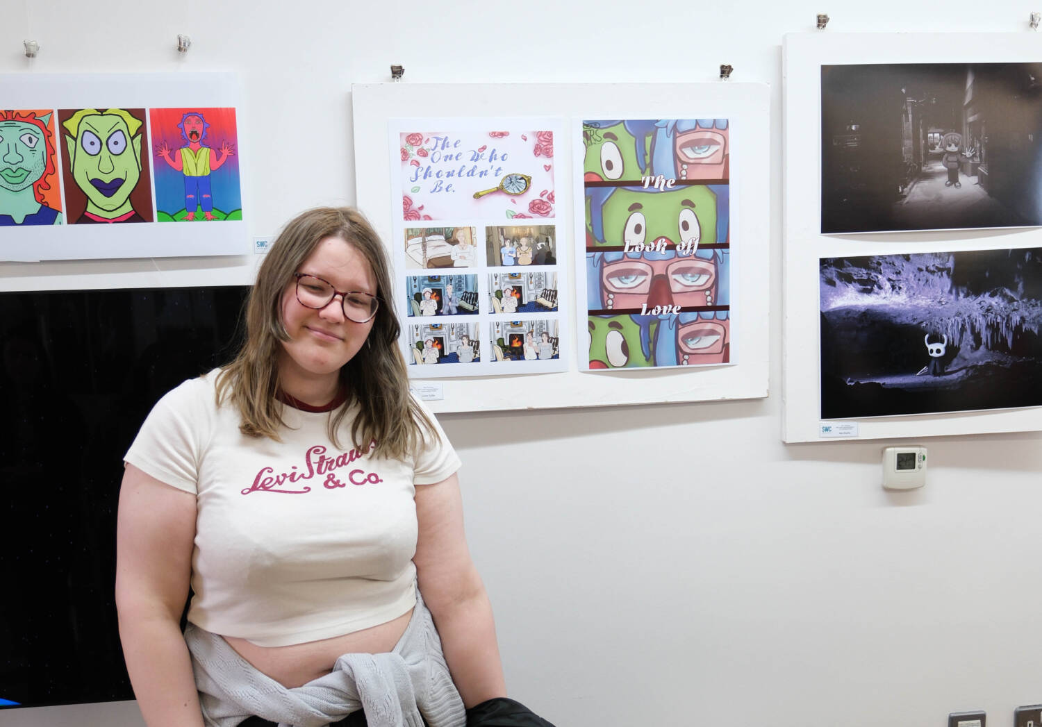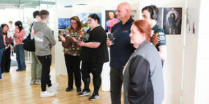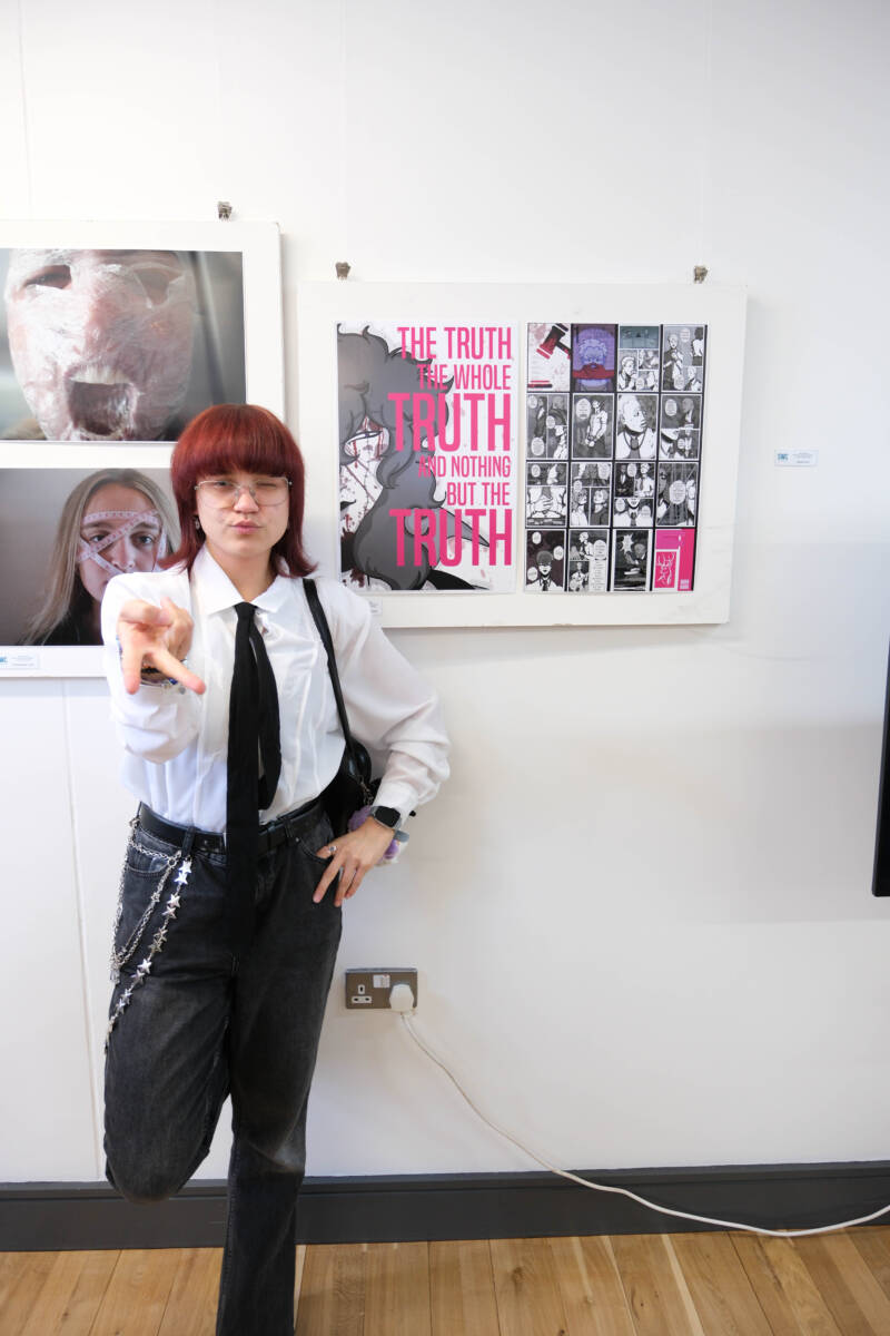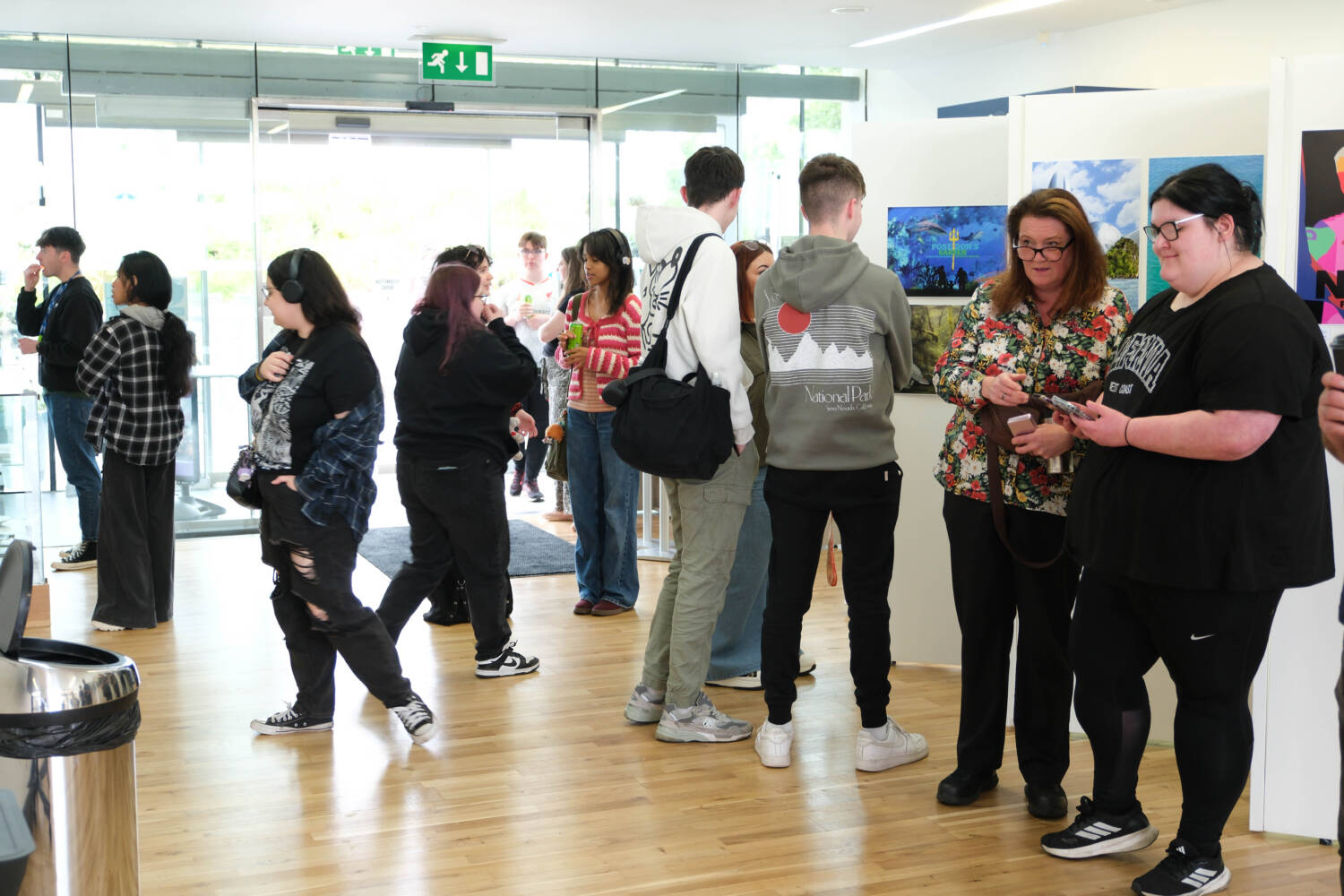 In attendance was Sinead McGee, Head of Engineering, IT & Creative Industries, who delivered a heartfelt address praising both first and final year Level 3 BTEC Extended Diploma in Art, Design and Media Practice, students for their outstanding work. She congratulated them on their remarkable achievements throughout the year and commended the exceptional quality and creativity on display in the exhibition.